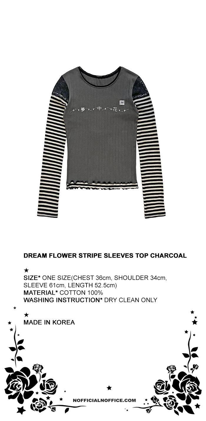 DREAM FLOWER STRIPE SLEEVES TOP CHARCOAL
