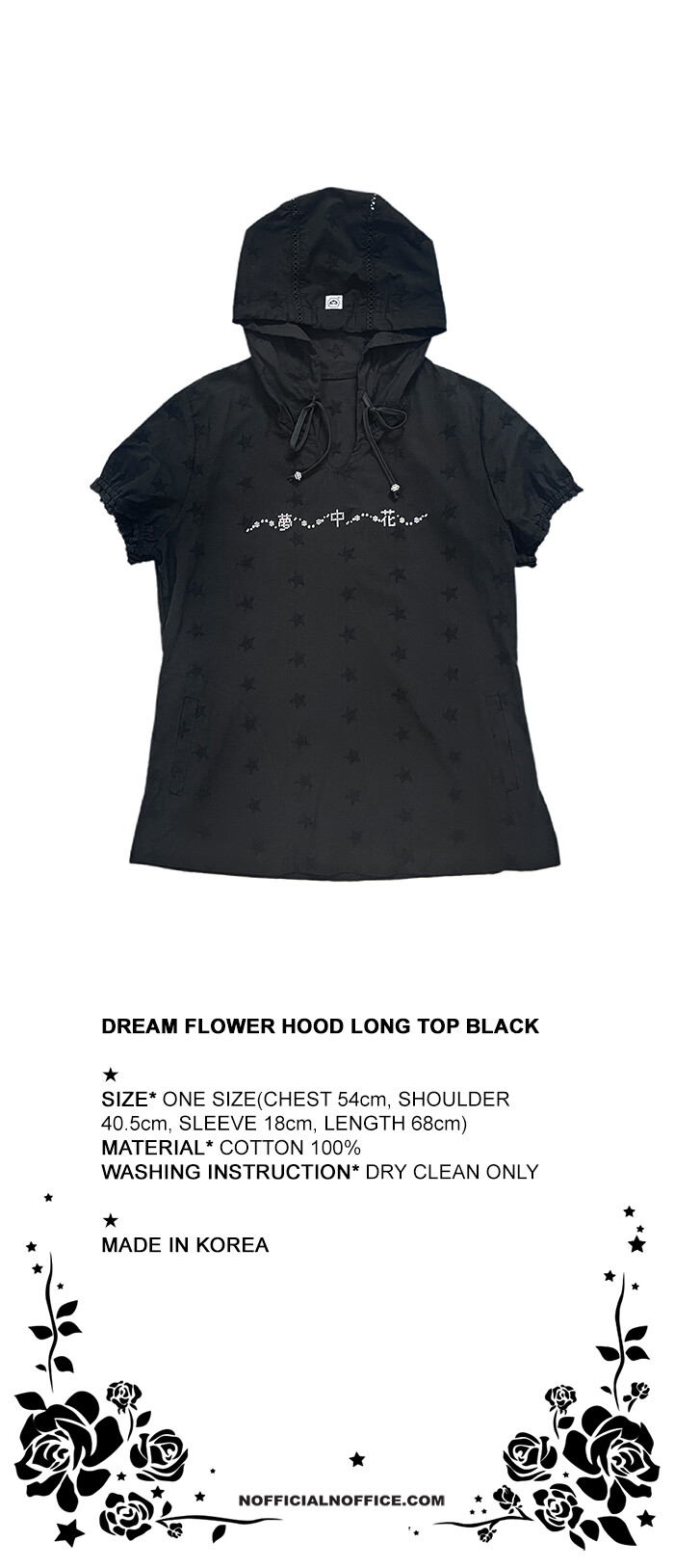 DREAM FLOWER HOOD LONG TOP BLACK