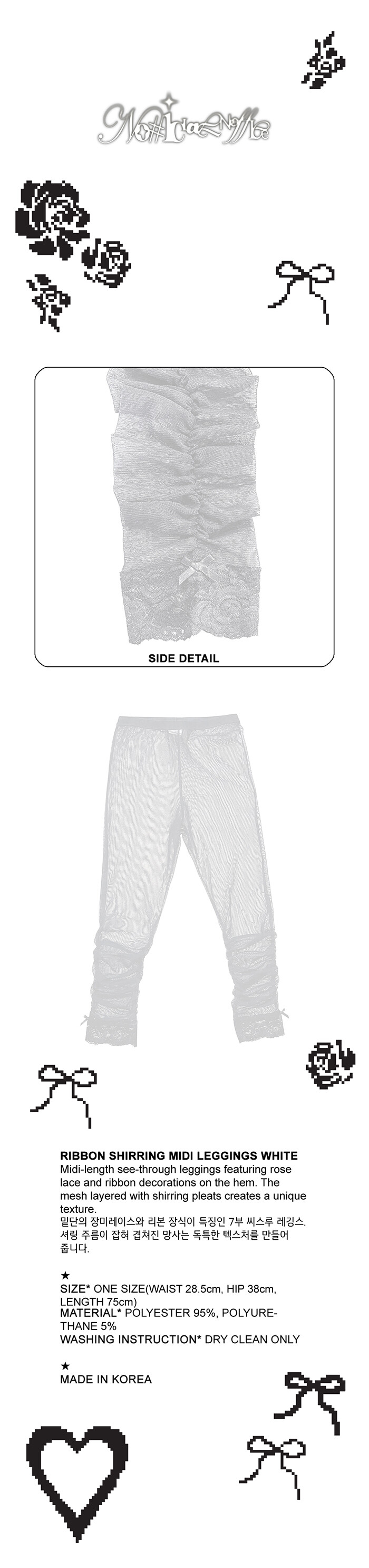 RIBBON SHIRRING MIDI LEGGINGS WHITE