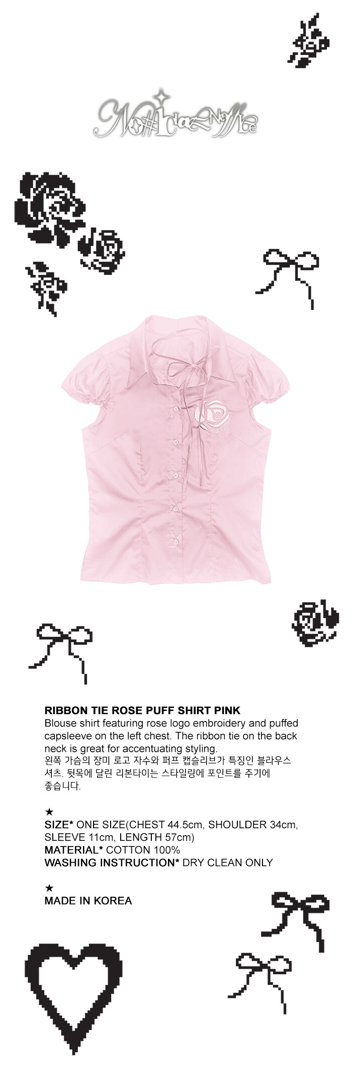 RIBBON TIE ROSE PUFF SHIRT PINK