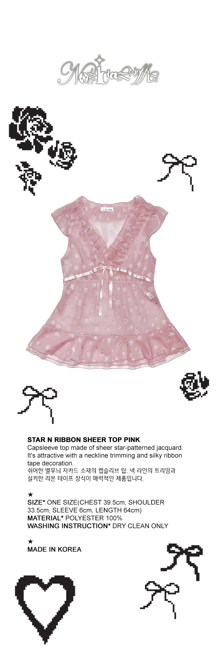 STAR N RIBBON SHEER TOP PINK