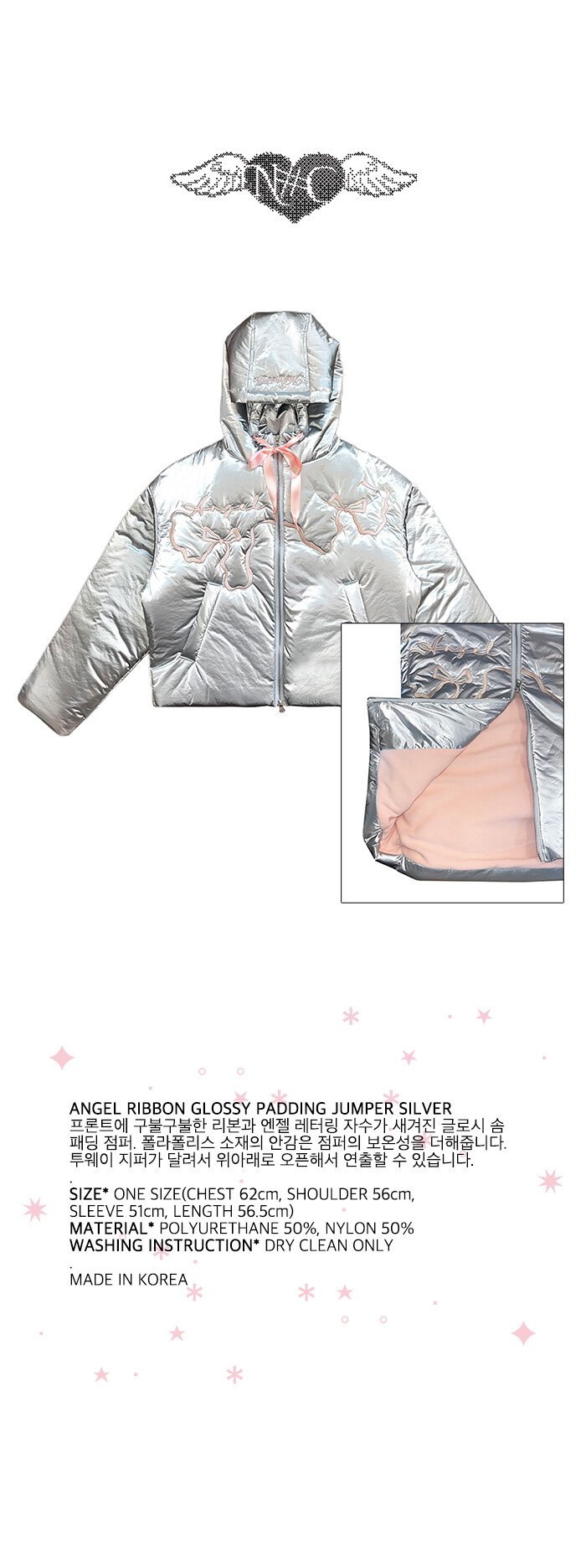 ANGEL RIBBON GLOSSY PADDING JUMPER SILVER