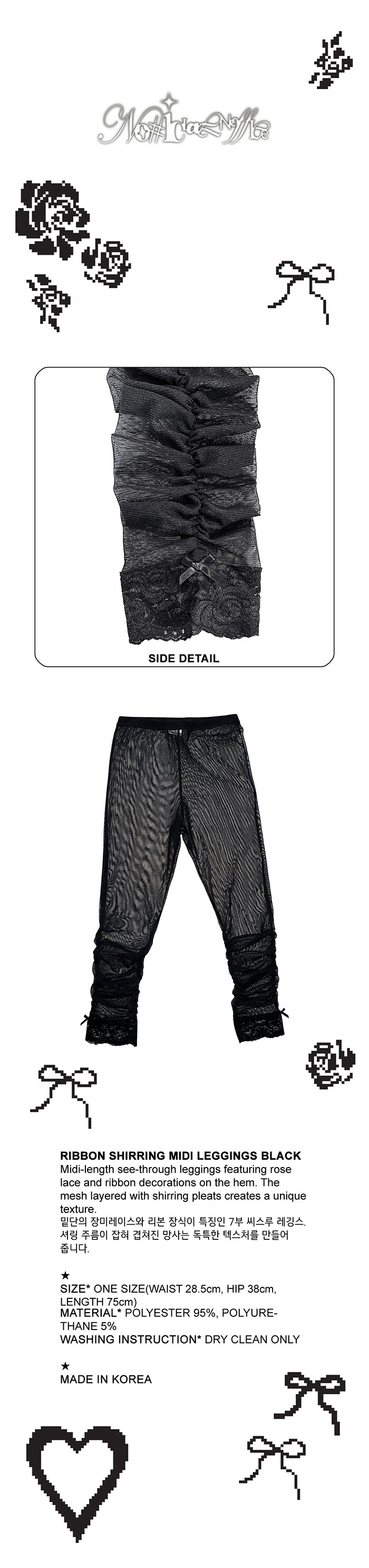 RIBBON SHIRRING MIDI LEGGINGS BLACK