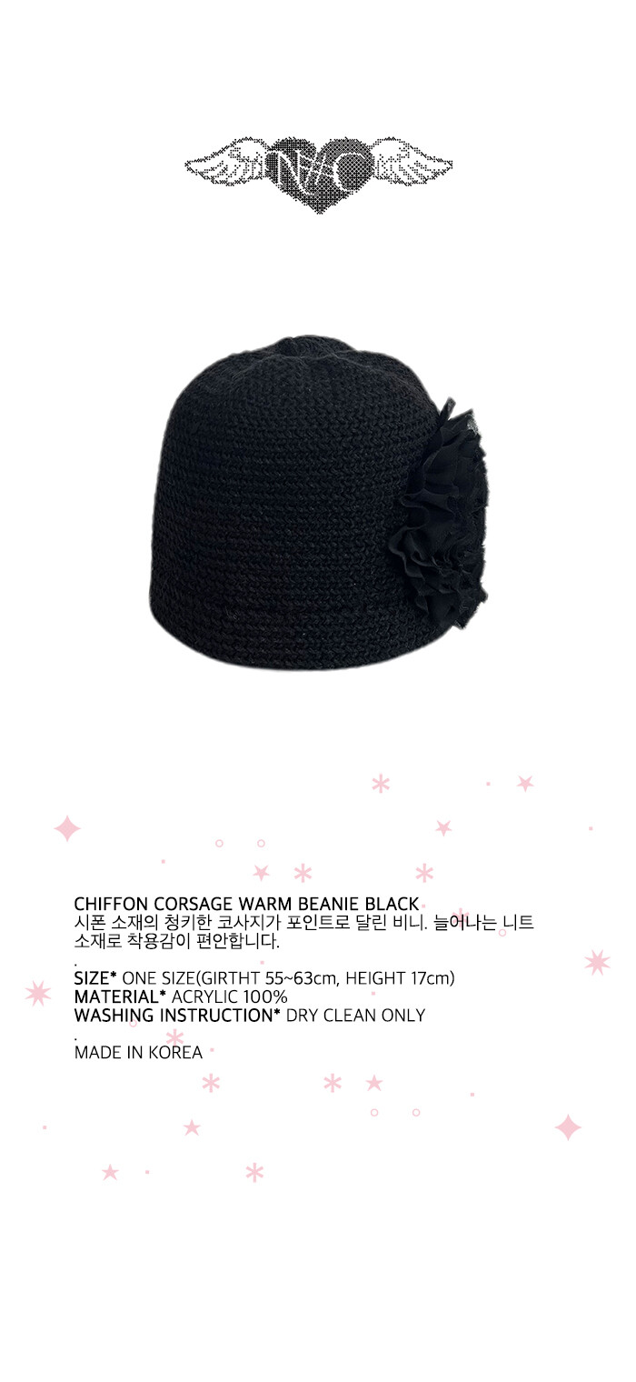 CHIFFON CORSAGE WARM BEANIE BLACK