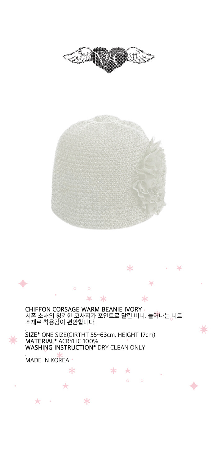 CHIFFON CORSAGE WARM BEANIE IVORY